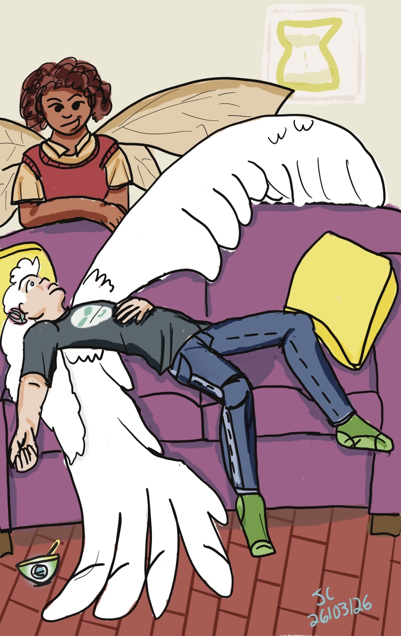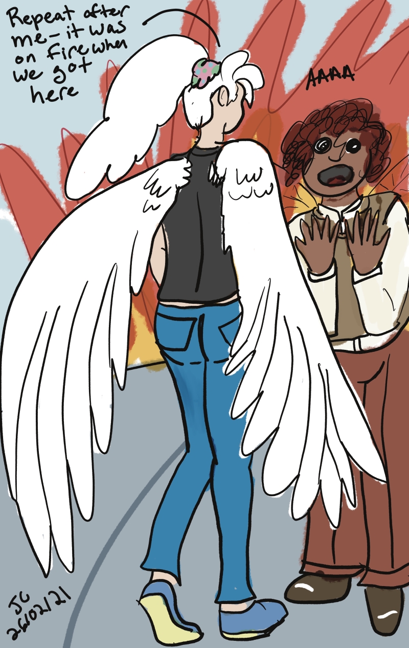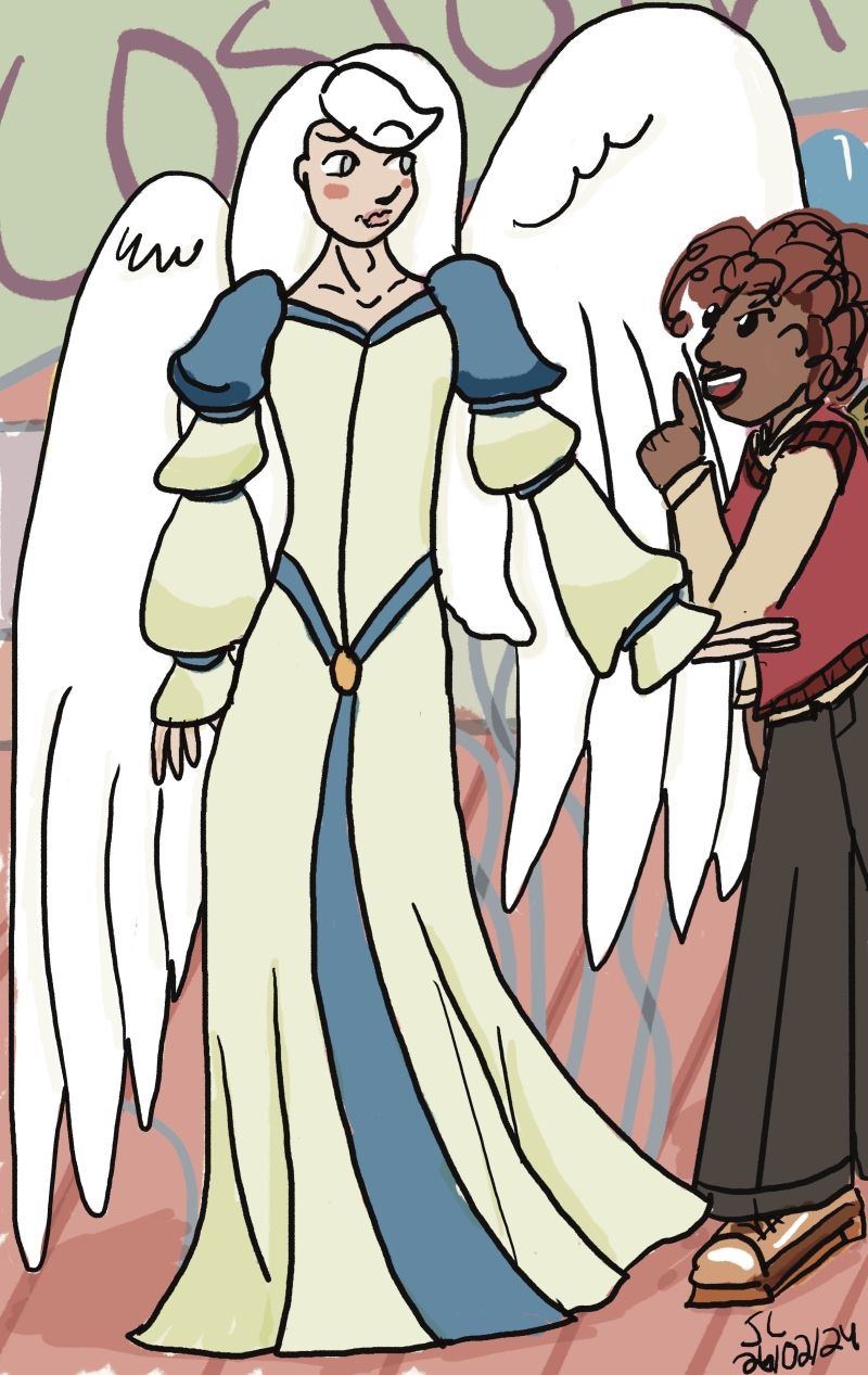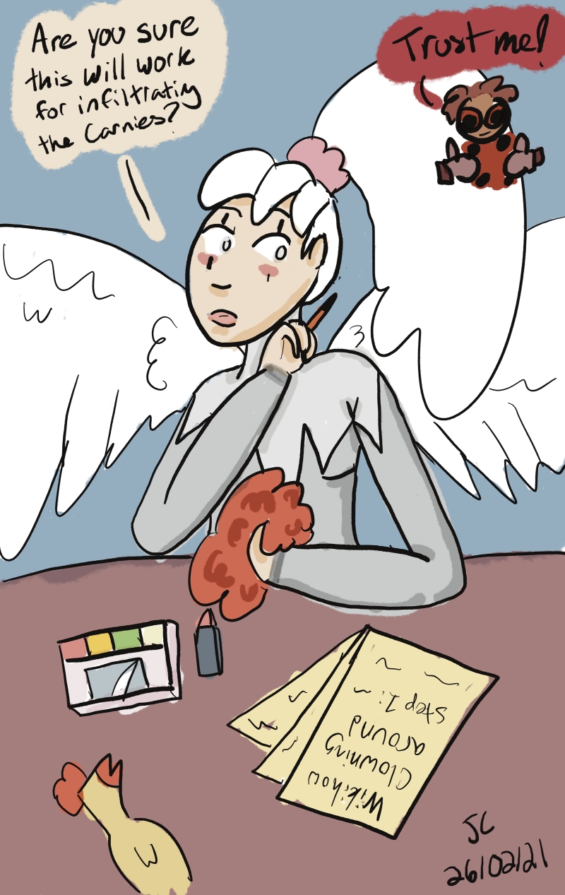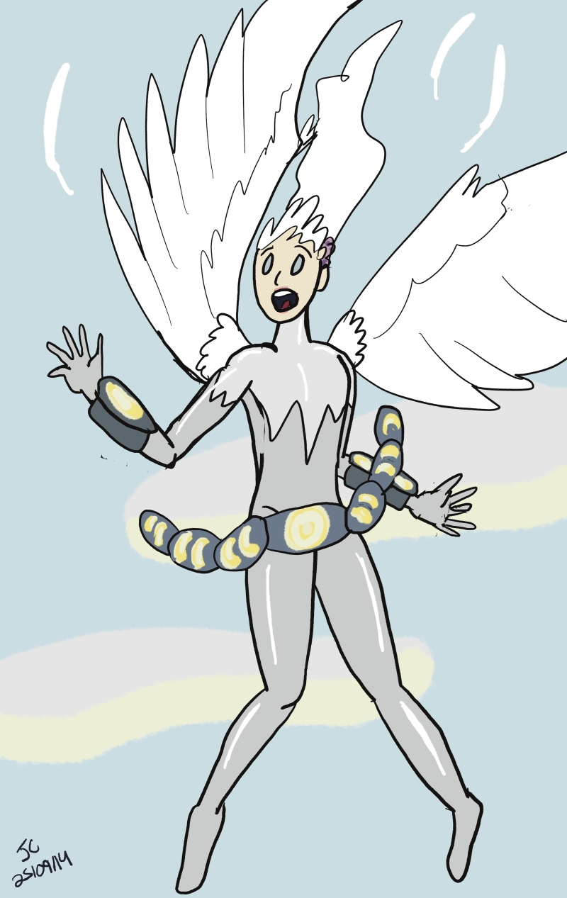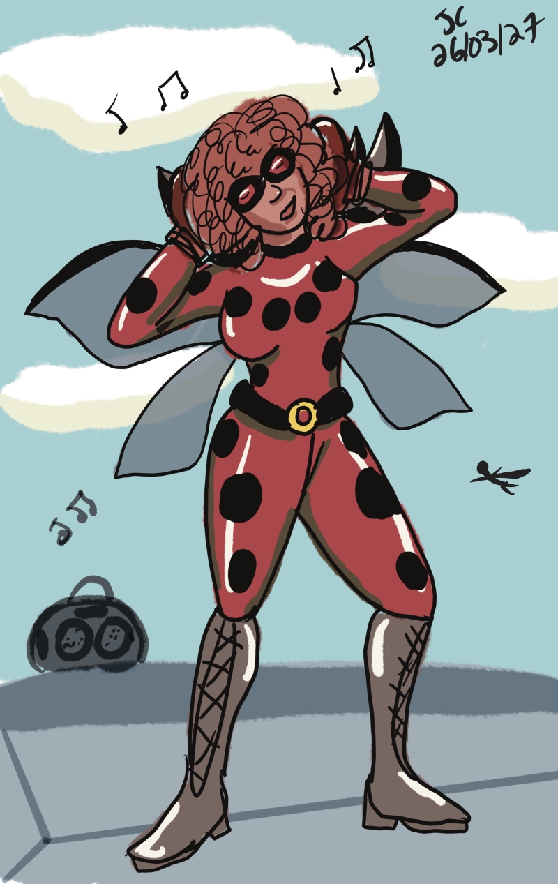 I've been doing my little comics but I've also been compelled to draw my City of Heroes characters a bunch, especially two named Silver Cygnet and Bugpunch, who are roommates.