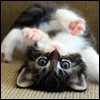 Description: An amazingly cute kitten gazes at you. She waves her tiny feet in the air. Her itsybitsy widdle feetsies.